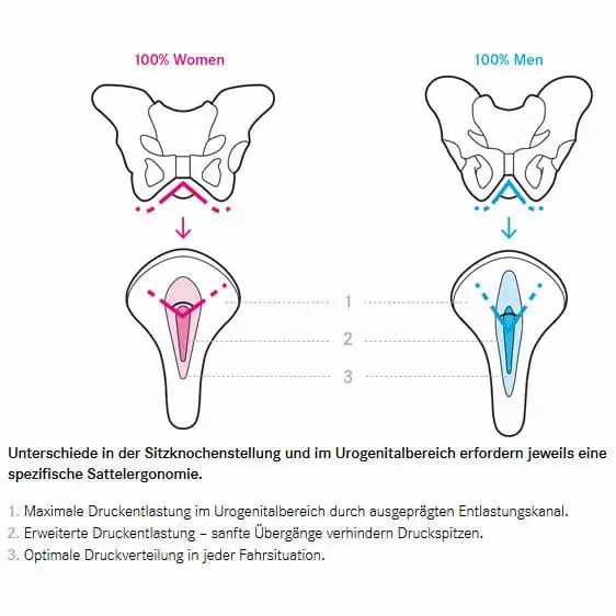 Verschiedene Sättel für Frauen und Männer: Beim Radfahren