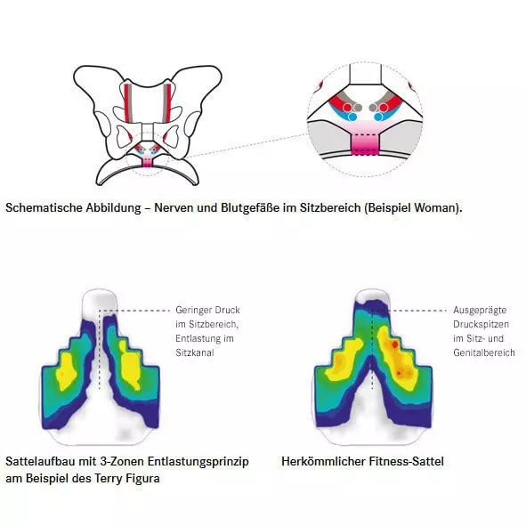 Terry-Fahrradsattels sind so angelegt, dass sie den Bahnen der Blutgefäße und