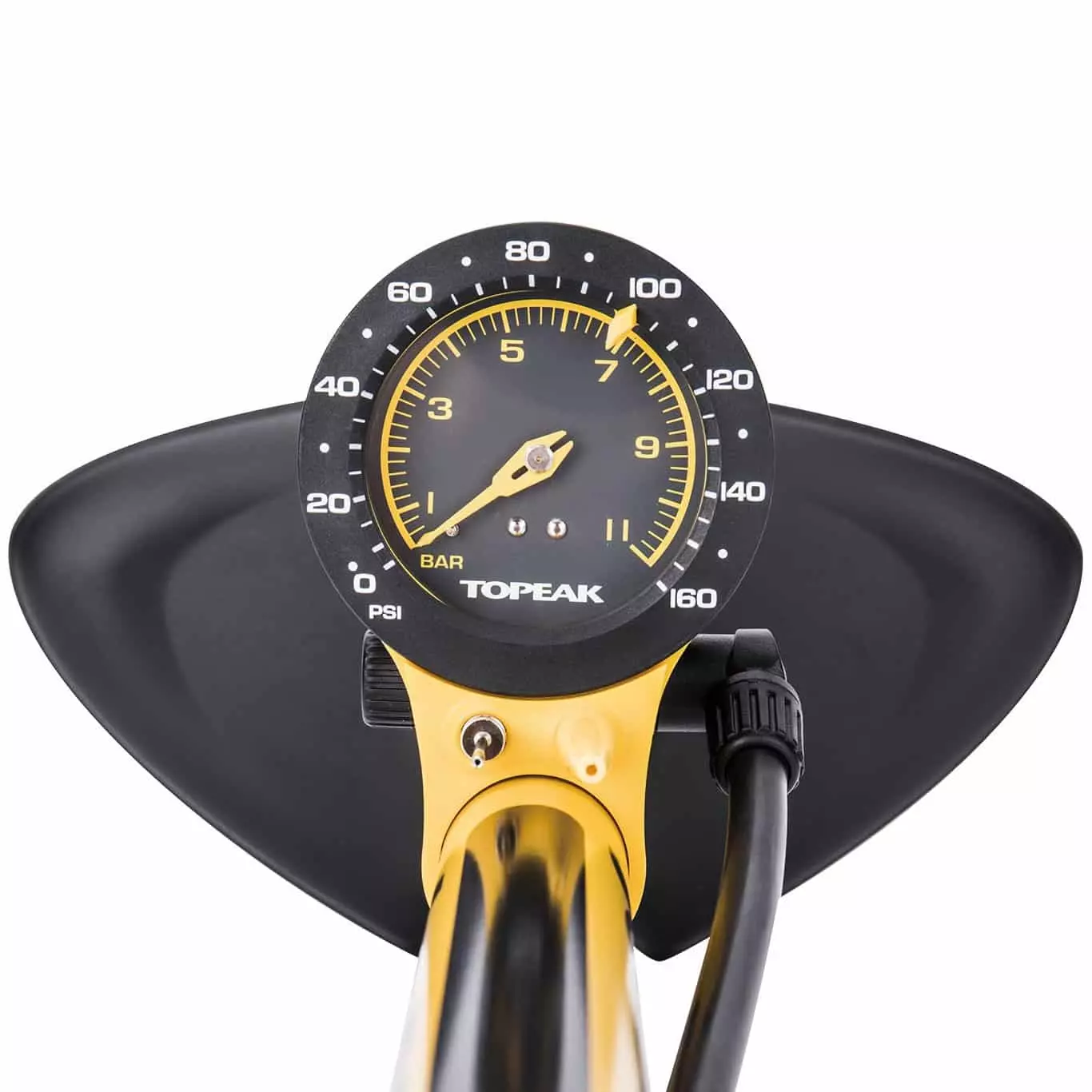 Frontseite des Pumpenzylinders angebracht, sodass Sie die Skala, die bis 11 Bar